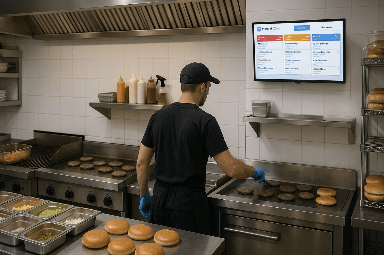 Envoi automatique des plats, suivi clair de la préparation et organisation fluide.