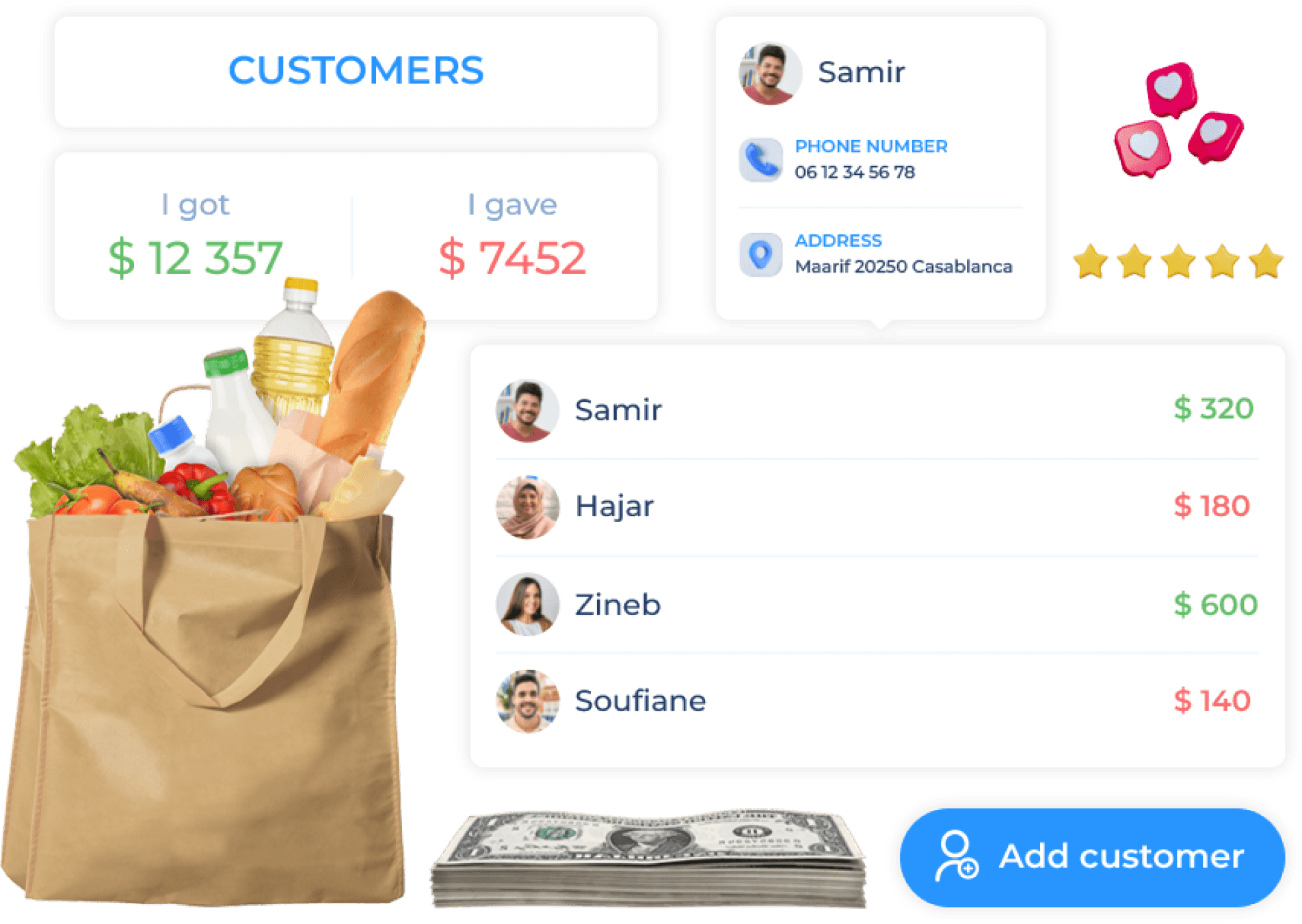 Create your customers profile, add their names, numbers, adresses and keep all the information centralized in one place.
